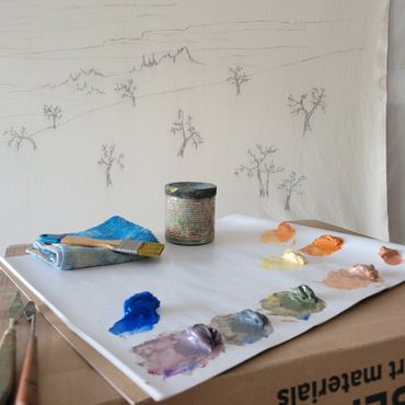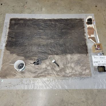 Firm Foundation, Acrylic, Oil, Oil Pastel, and Charcoal on Unstretched Canvas, 2024, 58 x 70.5 inches
